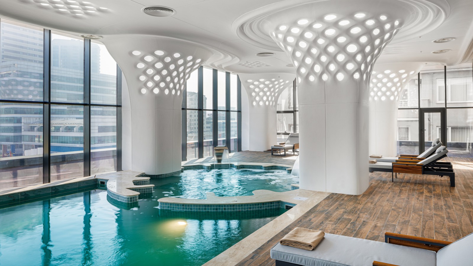 Futuristická vstupná hala je hlavným prvkom celej budovy: organické tvary, veľa bielej farby a stĺpy vysoké jeden meter, ktoré sa tiahnu od prízemia až po prvé poschodie. „Naša projektová zmluva pre nemocnicu Doruk Nilüfer zahŕňala aj návrh interiéru,“ hovorí architekt Yunus Emre Kara. Cieľom bolo navrhnúť nemocnicu, ktorá poskytuje služby na medzinárodnej úrovni a zároveň má atraktívny dizajn. To sa podarilo: veľkolepá budova sa dostala do užšieho výberu na Svetový festival architektúry 2024.