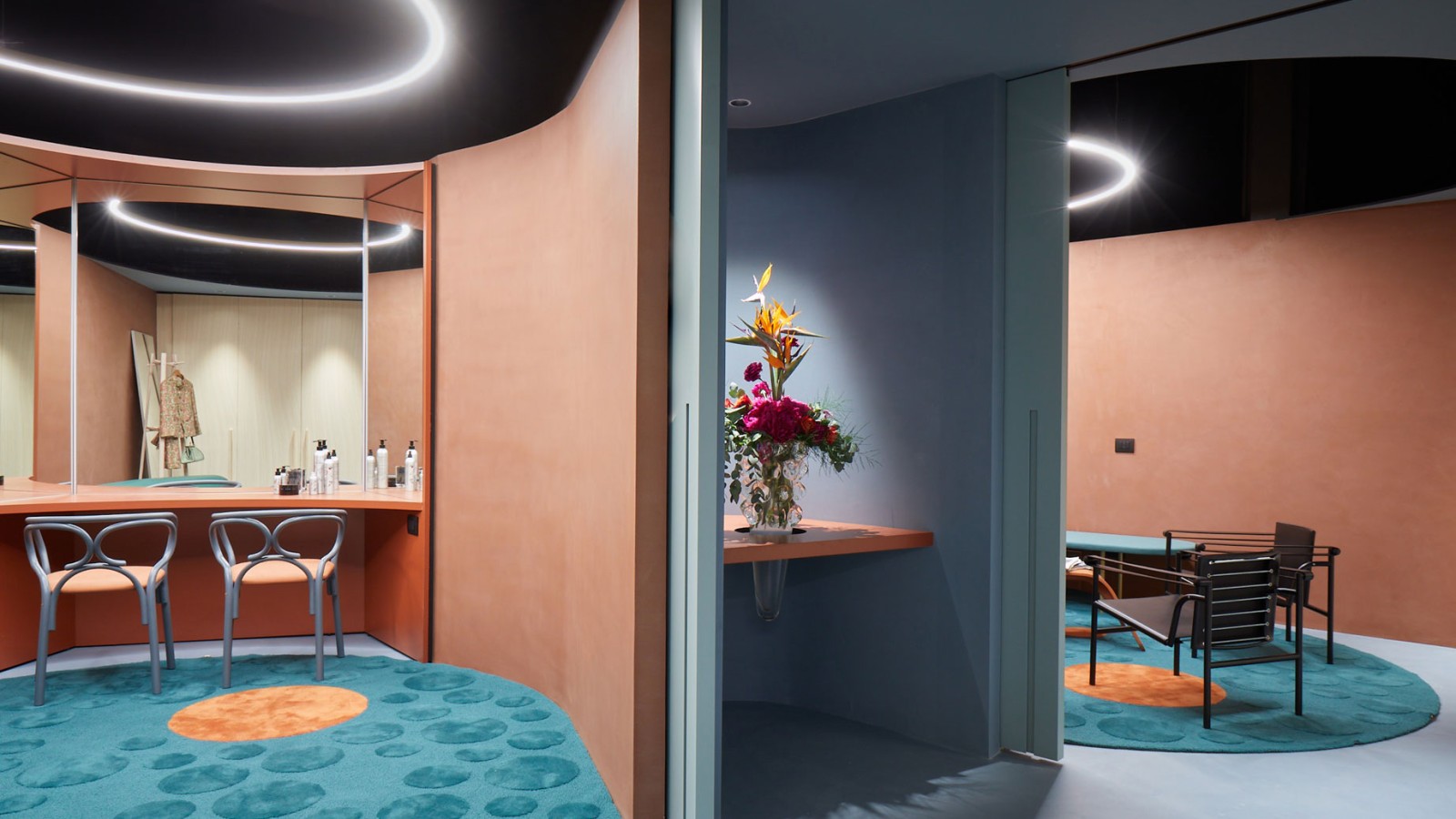 V roku 2022 vypísalo milánske divadlo Teatro degli Arcimboldi výberové konanie na rekonštrukciu celého hereckého zázemia. Talianske štúdio interiérového dizajnu Calvi Ceschia Viganò sa ujalo návrhu šatne pre najväčšie hviezdy súboru, ktorá nesie názov Primo Camerino, teda „prvá šatňa“.